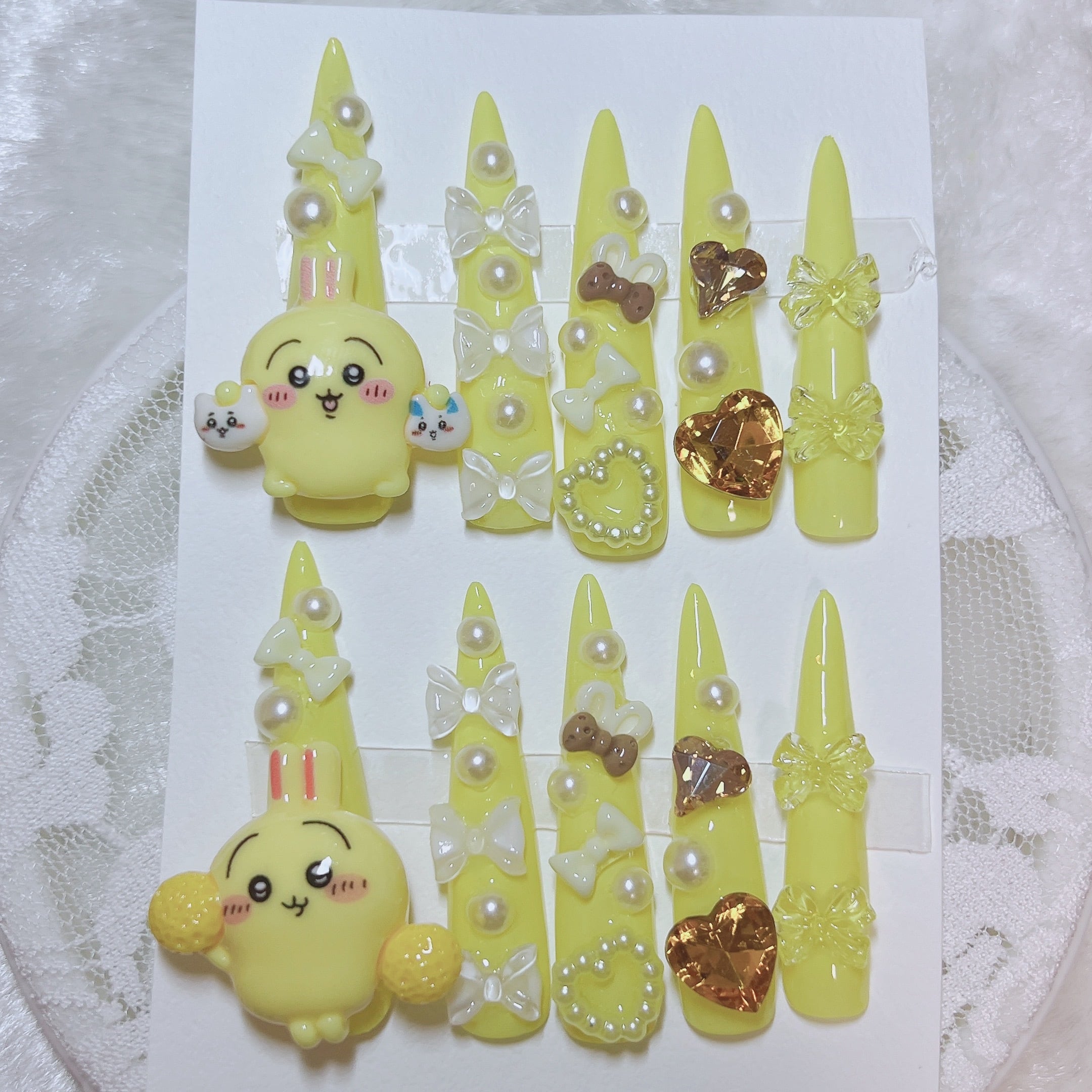 ʚ犬とうさぎのネイルチップɞ こちらのサイズはロングのバレリーナ型となります。親指から25468です。 〜付属品〜 ♡防水粘着グミ(2回分) ♡スティック ♡爪ヤスリ ※ひとつひとつ手作業の為、まれにほこり等入ってる場合がございます。