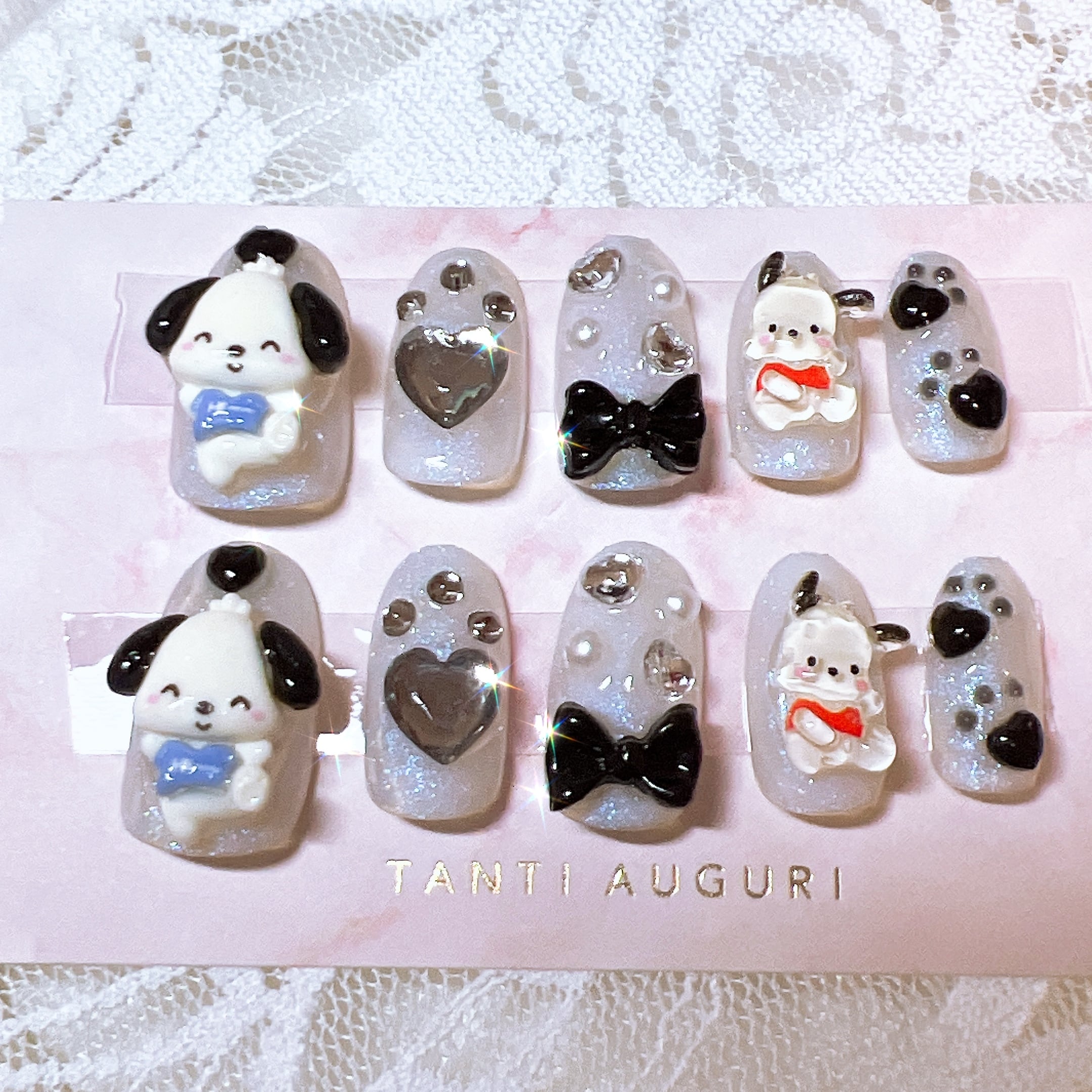 ʚ犬のスーパーロングギャルネイルチップɞ こちらのサイズはスーパーロングのバレリーナ型となります。親指から25468です。 〜付属品〜 ♡防水粘着グミ(2回分) ♡スティック ♡爪ヤスリ ※ひとつひとつ手作業の為、まれにほこり等入ってる場合がございます。