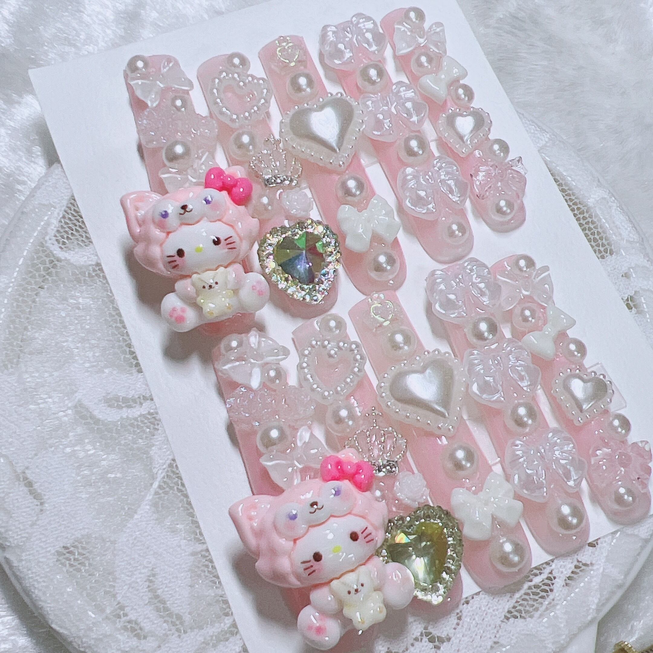 ʚリボンとハートのスーパーロングネイルチップɞ