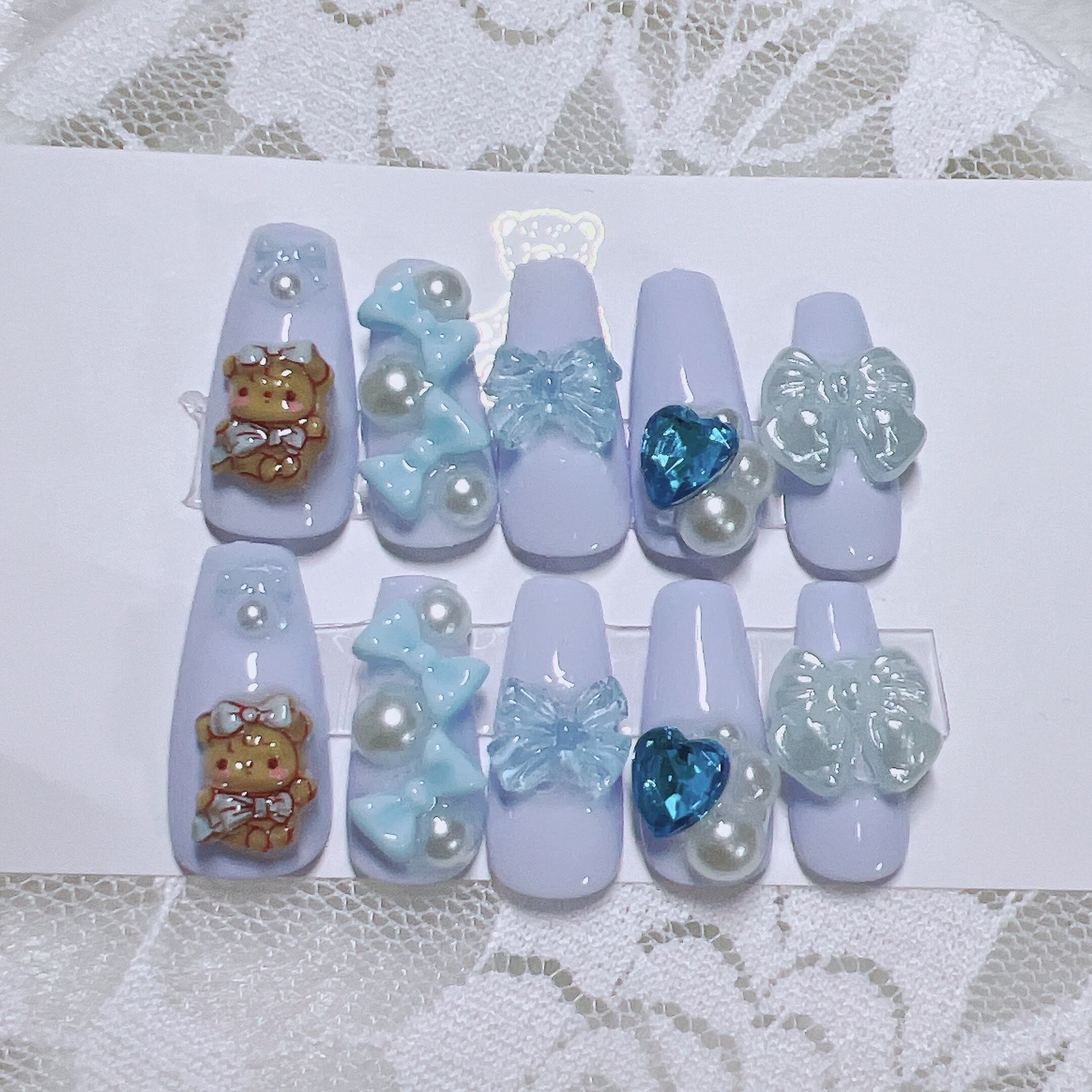 ʚクマのブルーリボンネイルチップɞ